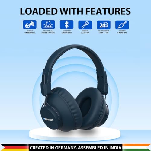 Specification: Blaupunkt Newly Launched BH41 Bluetooth Wireless Over Ear Headphones I Long Playtime I 40MM Drivers I Foldable I Flexible & Light Weight I Built in Mic I TurboVolt Fast Charging