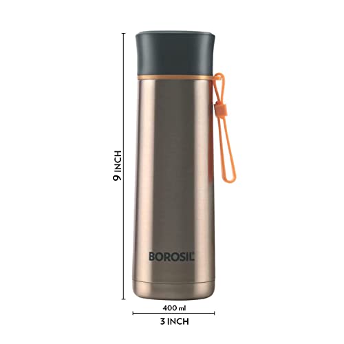 Borosil Stainless Steel Hydra Sprint – Vacuum Insulated Flask Water Bottle, 400ML