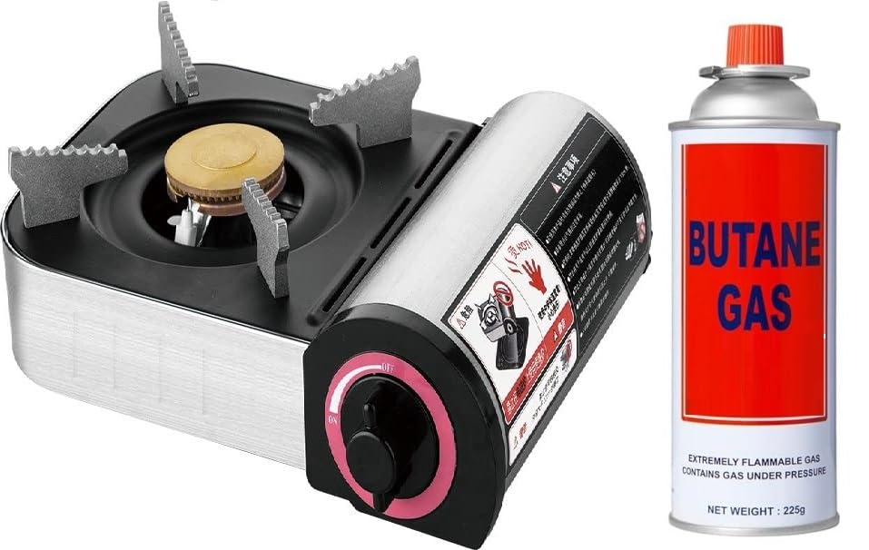 Camping Gas Stove from Portible Brand | Alloy Steel Stainless Ultra Light Outdoor Metal Cooking Stove With Storage Bag Lightweight with Cylinder (Steel stove with Cylinder)