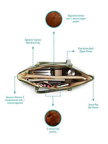 Handbag made of super premium croc texture with ample space to store all essentials, 3 compartments with 1 internal zippered center divider compartment. Comfortable flat shoulder handles with easy access back zipper pocket and secure top zip closure. Inspired by a pristine little island off the italian shores, caprese’s world of fashion truly reflects the design language of its muse: the isle of capri. A country that has, for centuries, been synonymous with the future of women’s fashion, echoing with an unblemished, free spirit.