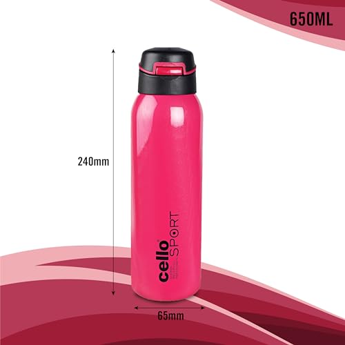Specification: Cello Gym Star Vacuum Insulated Flask | Hot and Cold Kids Water Bottle | Double Walled Sports Bottle for Travel, Home, Office, School | 650ml, Red (Stainless Steel)