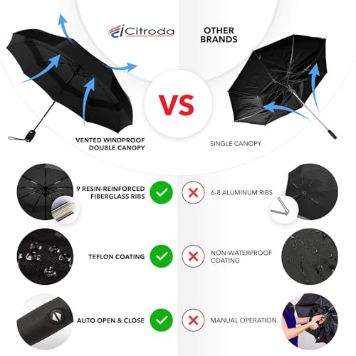 Specification: CITRODA branded Original Portable Auto Travel Umbrella – Umbrellas for Rain Windproof, Strong Umbrella for Wind and Rain, Auto Open/Close Button and Perfect Car Umbrella for Men & Women (BLACK)
