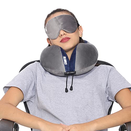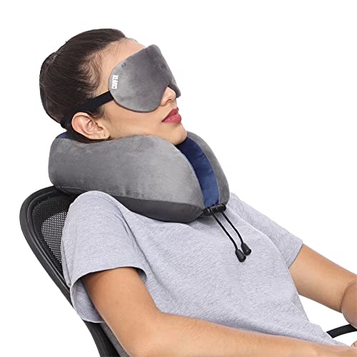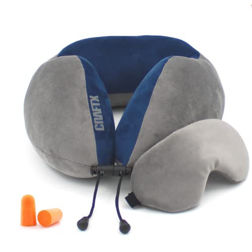 CRAFTX Travel Pillow|Pure Microfiber Neck Pillow|3D Sleepmask| Soft earplugs|Comfortable & Breathable|360 Degree|Complete Blackout with Eyemask Standard (Navy Blue,Grey, SUED, Polyester, Cotton )