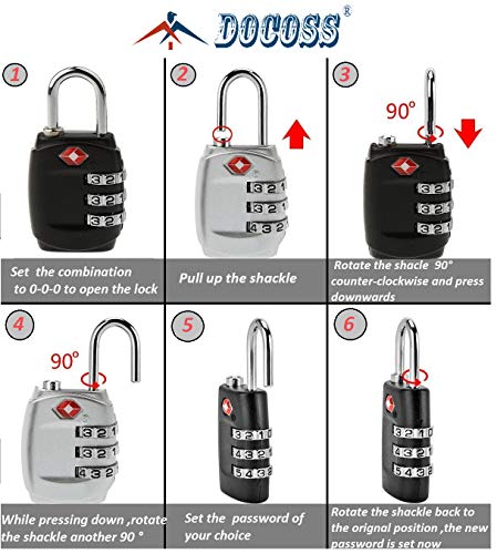 Specification: DOCOSS Set of 2-331-METAL TSA Approved Lock 3 Digit for Luggage Bag International Number Password Travel Locks (Multicolored)