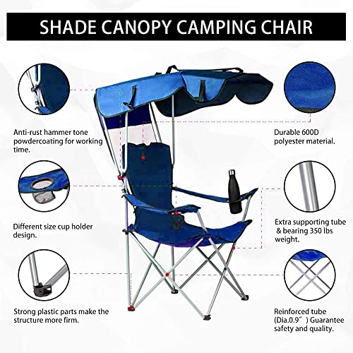 EKYLIP Camping Chair Portable Camping Chair Beach Chair with Canopy Shade Folding Lightweight Portable Fishing Chairs with Cup Holder for Adults Outdoor Events for Support