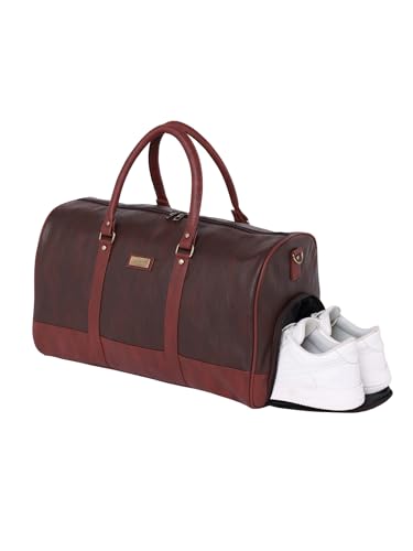 Specification: Fur Jaden Eco Conscious Vegan Leather Sustainable Duffle Bag 40L Travel Weekender Cabin Bag with External Shoe Compartment (Brown)