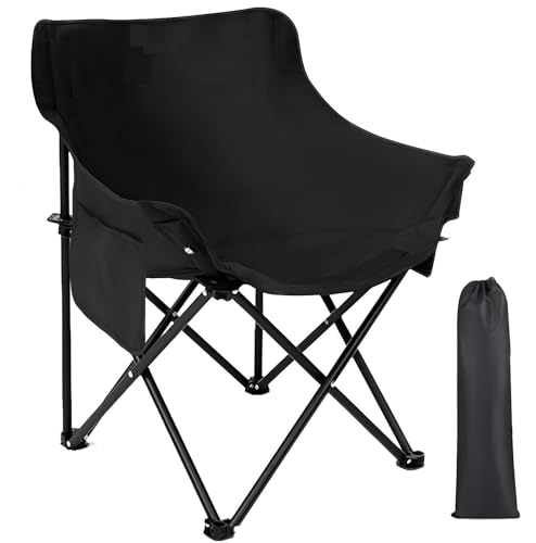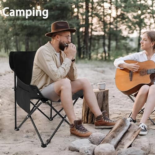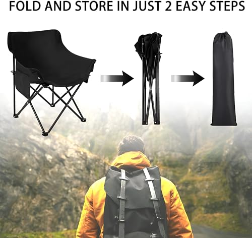 Hacer Carbon Steel Folding Chair with Backrest Outdoor Portable Armchair for Travel Camping Picnic Garden (Black)