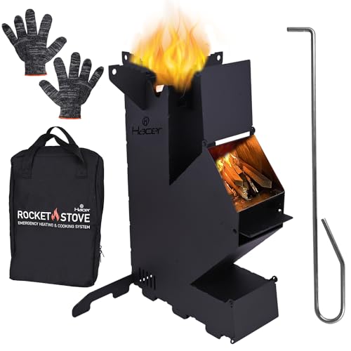 Specification: Hacer Rocket Stove Portable Wood Mini Burning Chulha with Large Fuel Chamber Carry Bag Fire Poker & Safety Hand Gloves for Outdoor Cooking Camping Picnic – Set of 1