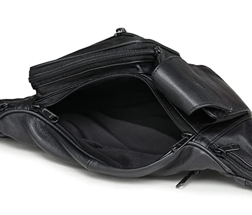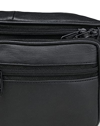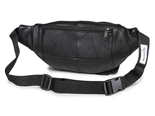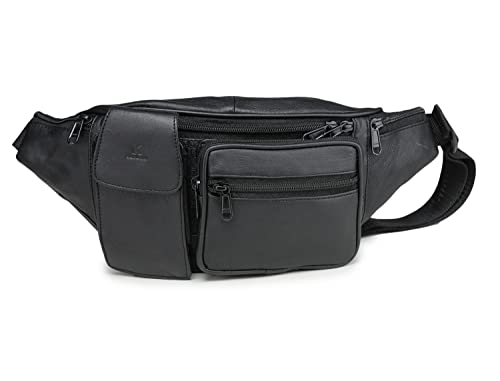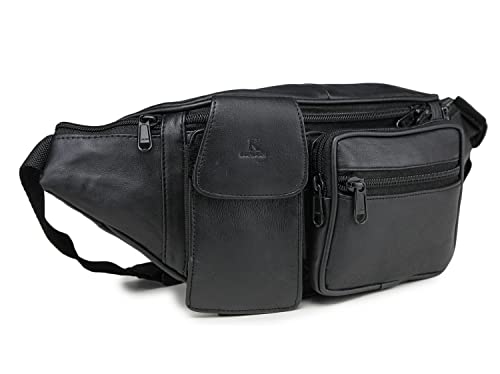 K London Stylish Real Leather Black Waist Bag Elegant Style Travel Pouch Passport Holder with Adjustable Strap(1276_blk)