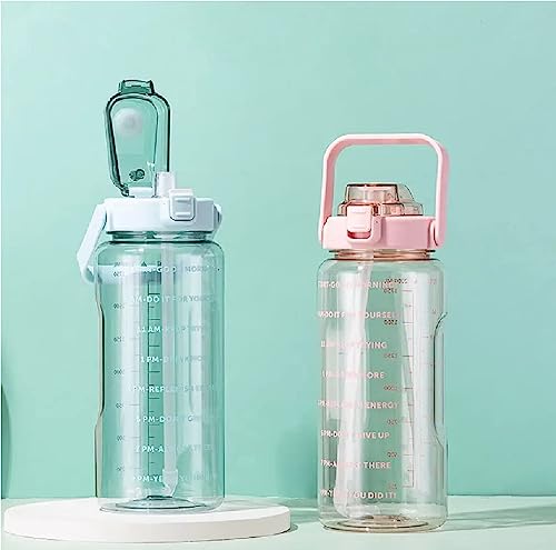 Introducing the 2-Liter Water Bottle with Straw and Motivational Design – Your Perfect Companion for Hydration On the Go! Are you tired of constantly refilling your water bottle during workouts, yoga sessions, or while you’re on the move? Look no further! Our 2-liter water bottle with a convenient straw and motivational design is here to make staying hydrated a breeze. Whether you’re hitting the gym, practicing yoga, embarking on a travel adventure, or just using it for your everyday hydration needs, this bottle has got you covered. Key Features: Large 2-Liter Capacity: No more interruptions to refill your bottle! Our extra-large 2-liter capacity ensures you have enough water to keep you going throughout your activities. Straw for Easy Sipping: The built-in straw allows you to take a sip without unscrewing the cap. It’s perfect for hassle-free hydration, even when you’re on the move. Motivational Design: Stay inspired and motivated with our unique motivational messages on the bottle. Reach your daily water intake goals with ease as you’re reminded to drink more water and stay on track. Portable and Travel-Friendly: Designed with your active lifestyle in mind, our bottle is easy to carry and fits in most cup holders. It’s perfect for workouts, yoga classes, road trips, and any other activity that keeps you on the go. One-Hand Operation: The flip-to-open lid design allows for convenient one-handed operation. No need to fumble with the cap; just flip, sip, and stay refreshed. Leak-Proof and Durable: Our bottle is made from high-quality materials, ensuring it’s both durable and leak-proof. You can trust it to keep your bag dry and your thirst quenched. BPA-Free and Eco-Friendly: Your health and the environment matter. This bottle is BPA-free and designed to help reduce single-use plastic waste.