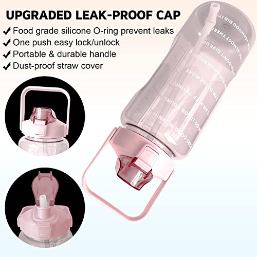 Keetoz 2Liter Water Bottle With Straw And Motivational Bottle Portable Mouth And Flip To Open Lid One Hand Drink For Gym, Yoga, Travel And Any Other Use (Pink)