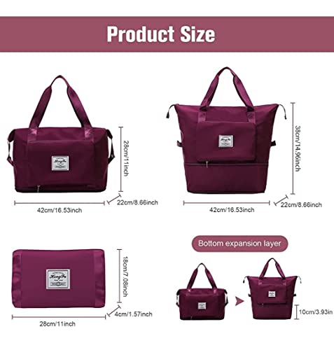 Specification: Large Capacity Folding Travel Bag, Foldable Travel Duffel Bag, Dry and Wet Separation Sports Portable Shoulder Bag, Travel Lightweight Waterproof Carry Luggage Bag (Wine)