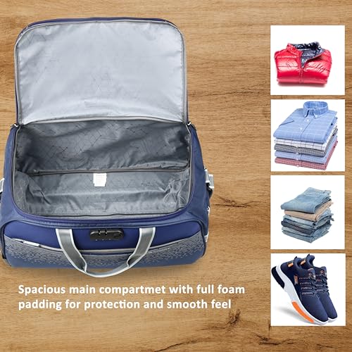 Built to last: This duffle bag for travel features a fully lined interior and is built with high quality polyester fabric for utmost durability. It houses a combi lock on the main compartment zippers that provide a secure anti theft touch to the duffle bag. Made from water repellent & wear resistant material & premium zippers, makes it a super durable and lightweight all weather travel duffle bag.