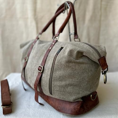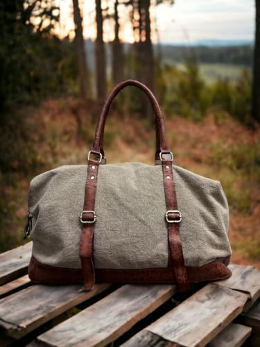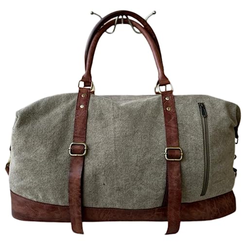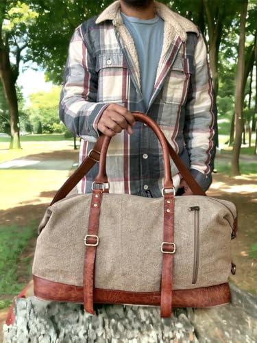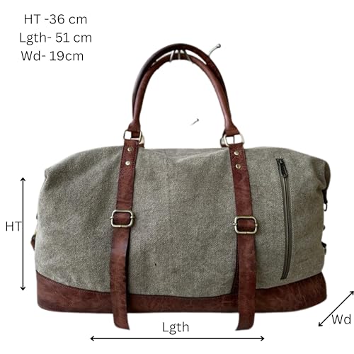Specification: Maymith Canvas/Genuine Leather Duffel Bag for Travel/Stylish Overnight Bag/Gym Bag for Men and Women Color-Tan/Khakhi (Capacity 40 Ltrs)