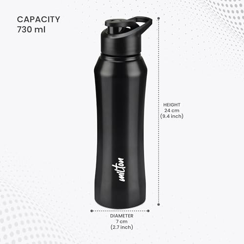 Specification: MILTON Comet 750 Stainless Steel Water Bottle 730ml for School, Office, Home, Gym, Leakproof, Rust free, Black