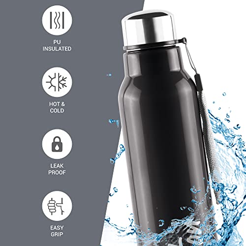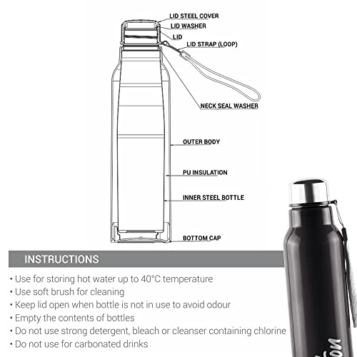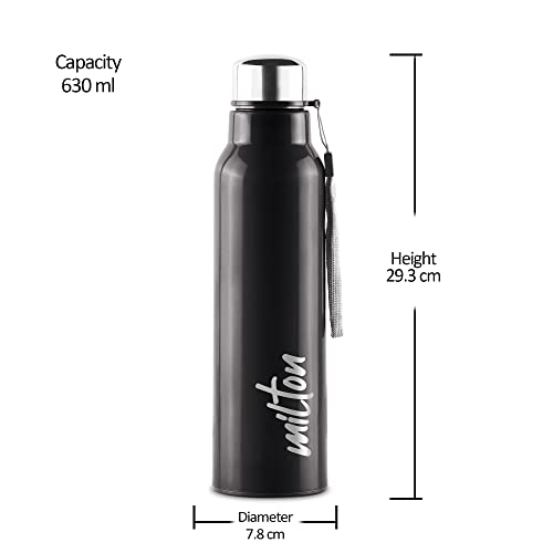 Specification: Milton Steel Fit 900 Inner Stainless Steel Water Bottle, 1 Piece, 630 ml, Black | Easy Grip | Leak Proof | Hot or Cold | School | Office | Gym | Hiking | Treking | Travel Bottle