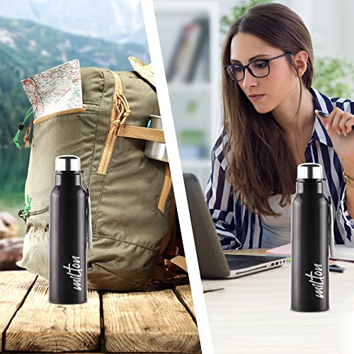 Milton Steel Fit 900 Inner Stainless Steel Water Bottle, 1 Piece, 630 ml, Black | Easy Grip | Leak Proof | Hot or Cold | School | Office | Gym | Hiking | Treking | Travel Bottle