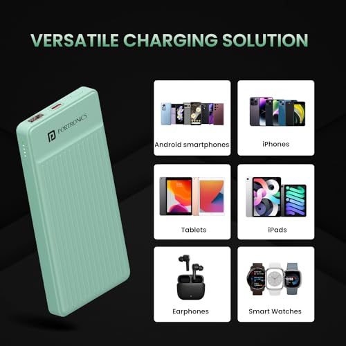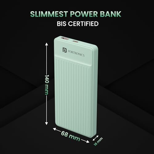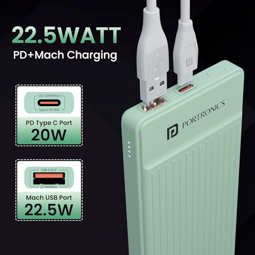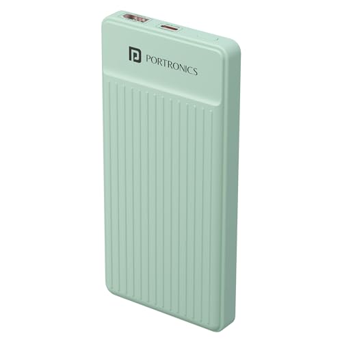Specification: Portronics Luxcell B 10K 10000 mAh 22.5W Fast Charging Power Bank, Ultra Slim Power Bank with Mach USB-A Output, Type C PD Output, Type C Input, Wake Up Button(Green)