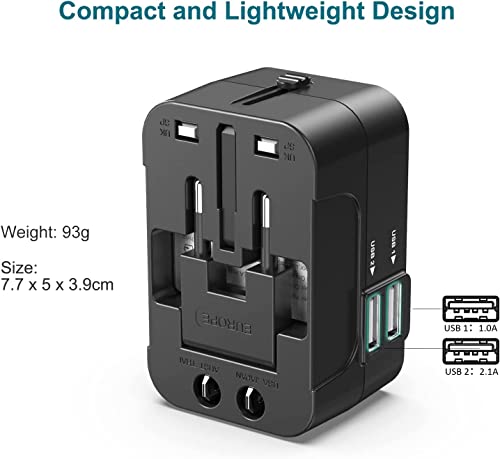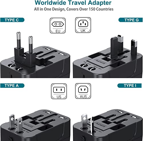 Specification: rts 2023 Dual USB Travel Adapter Worldwide All in One International Universal Power Travel Adaptor Wall Charger AC Power Plug Adapter with 2.1 A TO 6A Max Dual USB Charging Ports for USA CANADA EU UK AUS LONDON Cell Phone Laptop
