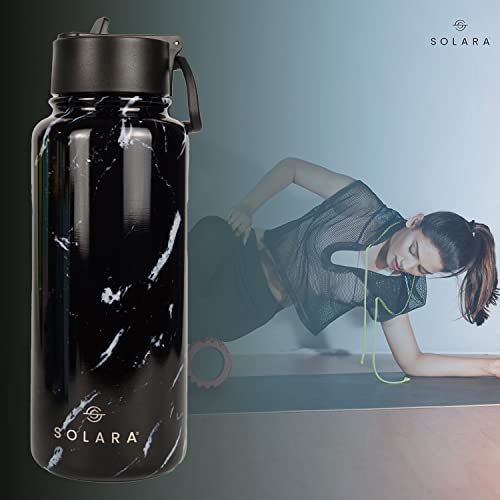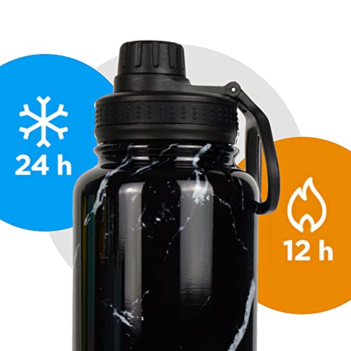 SOLARA Insulated Water Bottle 1000ml, Hot Water Bottle, Thermosteel Water Bottle for Travel, Home, Office, School, Gym, Adults, Water Bottle Hot and Cold, Sipper Bottle, Black Marble