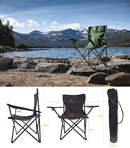 SOLDTRUE Foldable Camping Chair with Carrying Bag, Portable Folding Chair with Arm Rest Cup Holder and Carrying and Storage Bag for Fishing Beach, Travelling, Lawn (Black, Big Size)