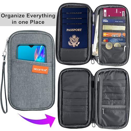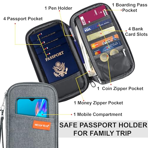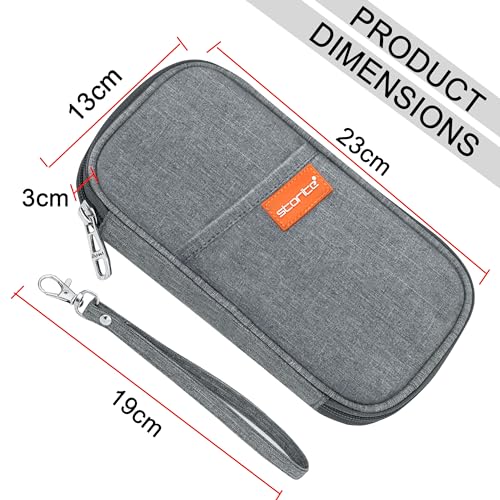 Specification: Storite Nylon 4 Passport Slots Travel Family Passport Holder Wallet Organizer for Credit Debit Card Boarding Pass with Removable Hand Strap for Men and Women (Grey, 13 x 3 x 23 Cm)