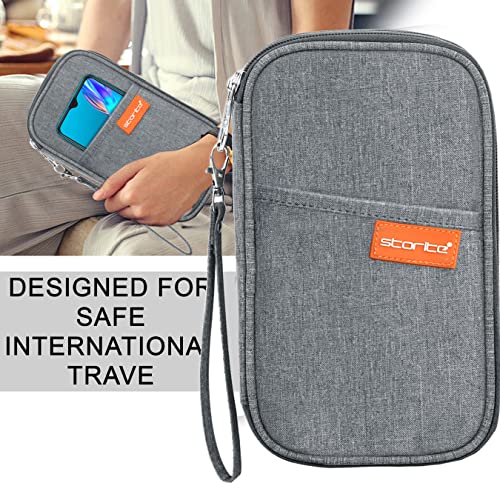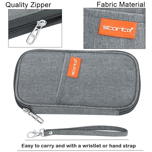 Storite Nylon 4 Passport Slots Travel Family Passport Holder Wallet Organizer for Credit Debit Card Boarding Pass with Removable Hand Strap for Men and Women (Grey, 13 x 3 x 23 Cm)