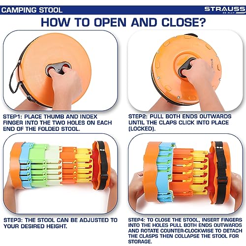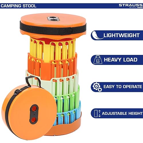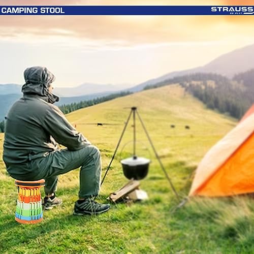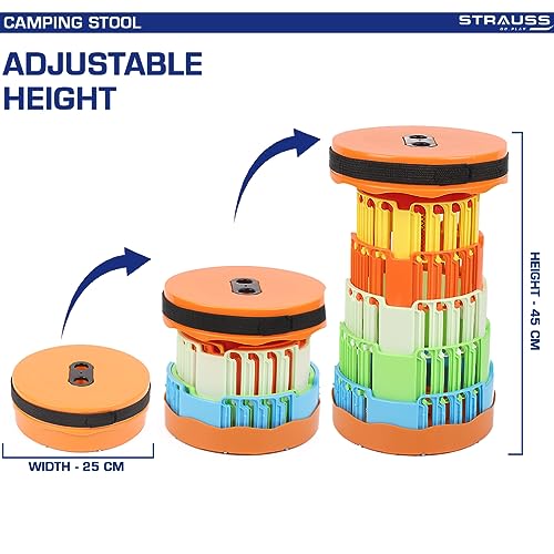 Specification: STRAUSS Collapsible Folding Chair|Retractable and Portable Plastic Stool|Ideal For Outdoor Fishing,Camping,Hiking,Travel,BBQ |Adjustable Telescoping Foldable Camping Stool for Adults, (Red/Multicolor)
