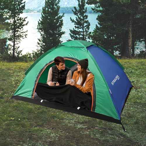 STRAUSS Portable Tent for Camping |5-10 Minutes Easy Setup | Ideal for Picnic, Hiking, Trekking|Waterproof and Windproof Tent for Camping |Superior Air Ventilation |Ideal for 2 Persons,(Blue/Green)