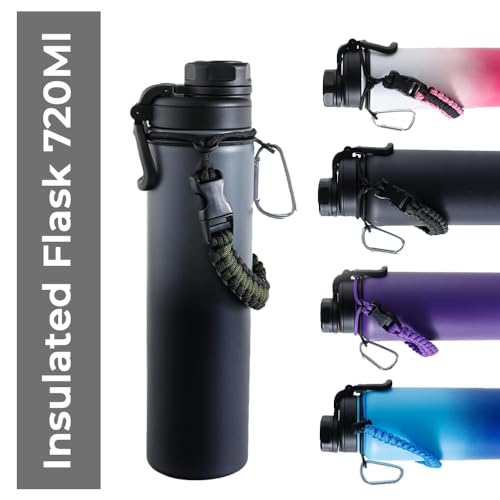 ELEGANT DESIGN & ACCESSORIES: Crafted from durable stainless steel, this 720ml Black-Grey bottle from The Better Home comes with a rope, carabiner, and leak proof features – making it perfect for daily use.